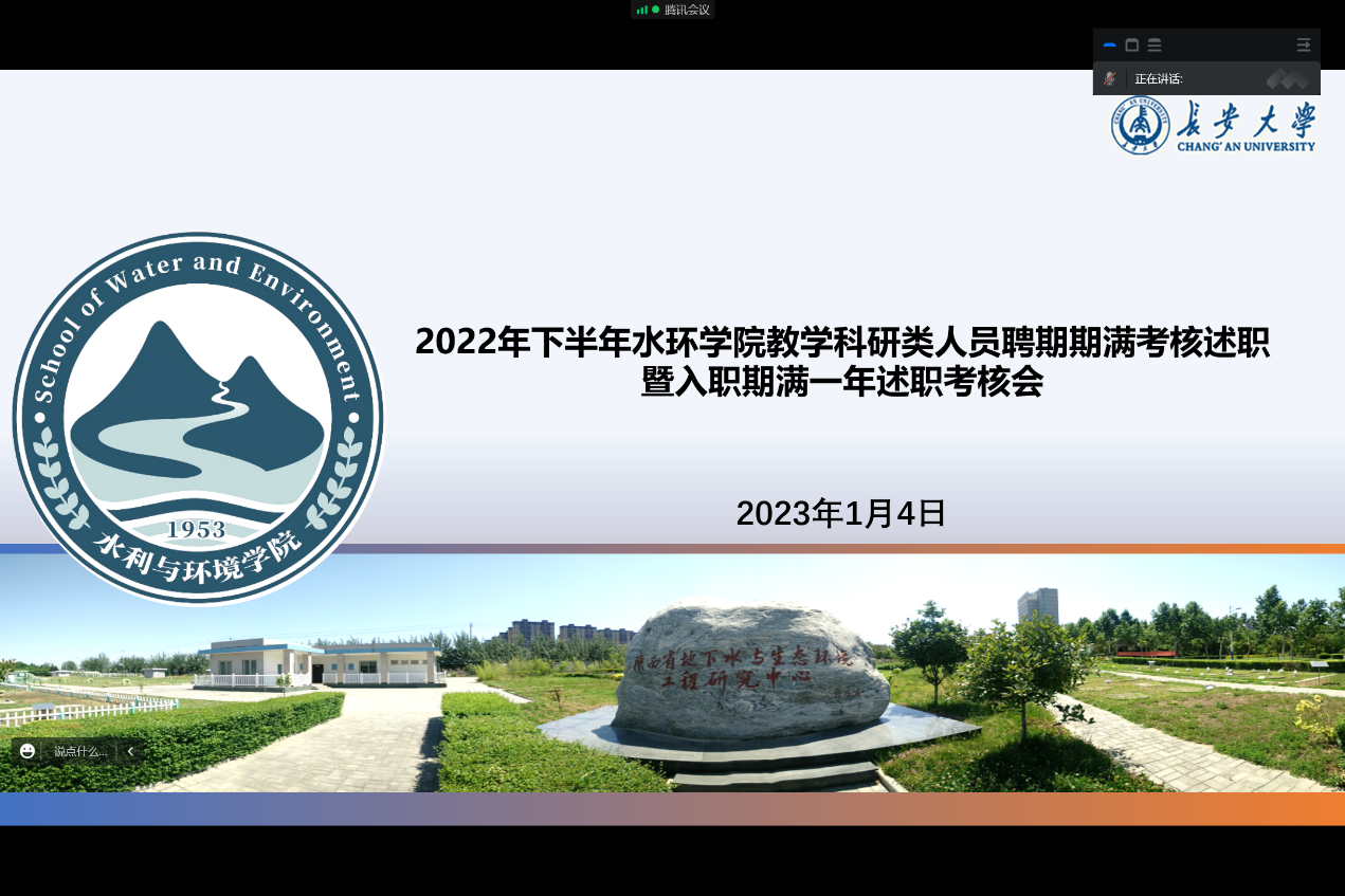 2022年下半年教学科研类人员聘期期满考核暨入职期满一年述职考核会于线上召开,学院聘期考核小组成员及被考核人参加了会议。
