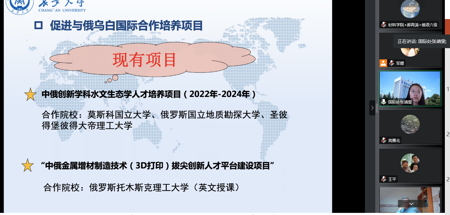 C.C.普茨尼亚科夫教授从建校历史、学校环境、学科建设、师资力量、培养方式、国外合作院校、国外留学生在校学习以及留学生毕业发展等多方面对莫斯科国立大学做了详细介绍,并重点介绍了中国籍的莫大优秀毕业生的学习和工作情况。