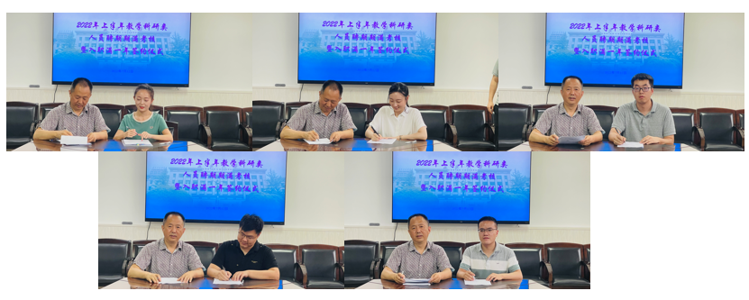 2022年上半年教学科研类人员聘期期满考核暨入职期满一年教师签约仪式在学院三楼会议室召开,学院领导、系室主任及近三年来入职的青年教师参加了会议。