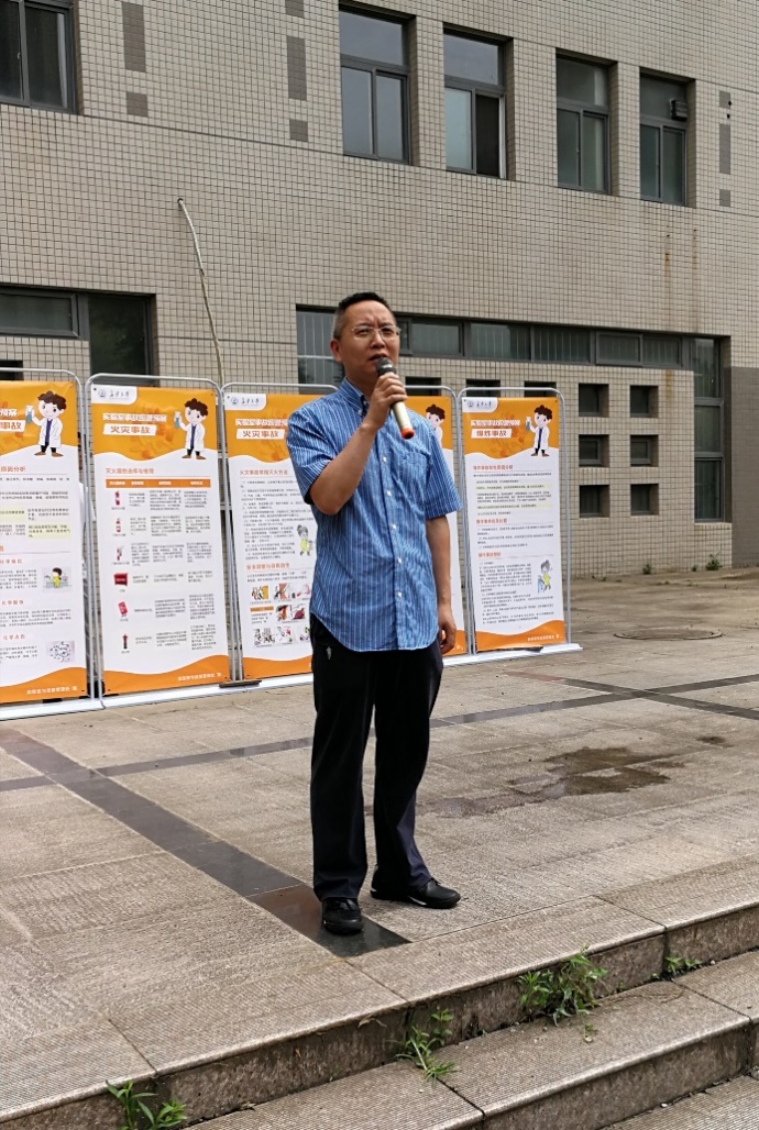 张雷对本次演练作总结发言。他指出,本次实验室安全应急演练环节,各部门配合高效有力,达到了演练的预期目的和效果,对广大师生具有良好的指导模范作用。他强调,学校高度重视实验室安全管理工作,而实验室安全应急演练是提升安全管理的重要举措。他希望其他学院也能多举办类似的安全演练,提升全校师生的安全意识、自救和应急救援能力。