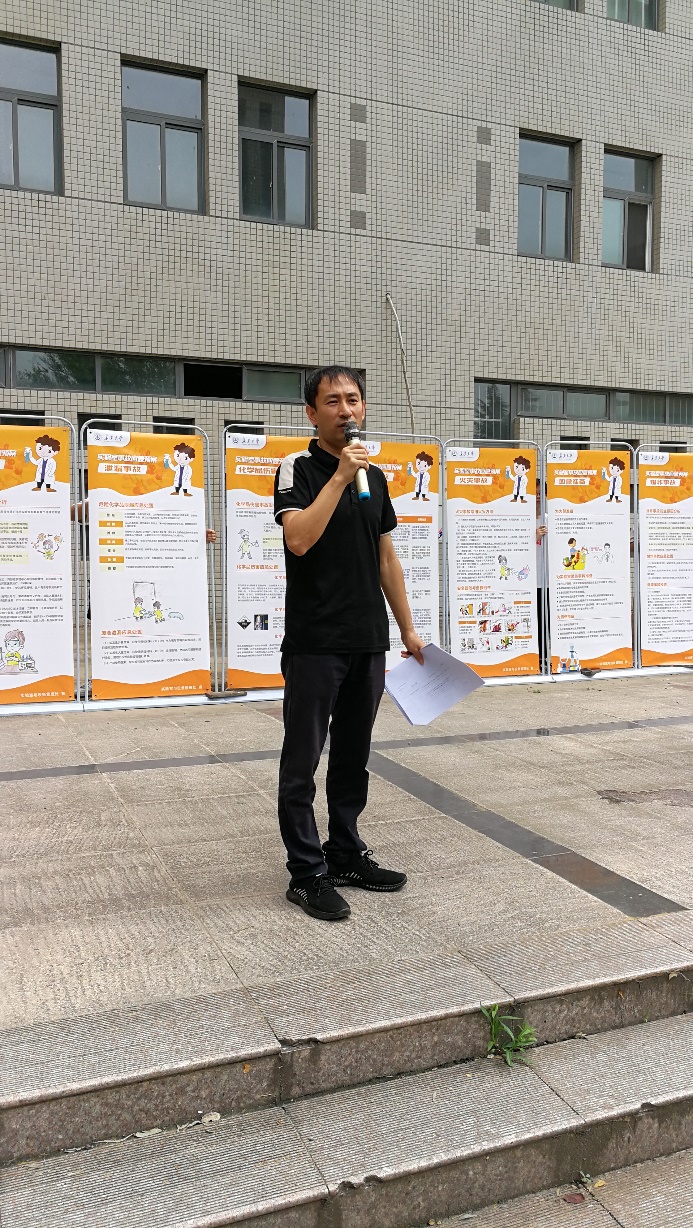 实验室安全事故应急管理处置能力。西安安备思软件有限公司总经理刘涛与观摩师生进行安全知识互动,增强了观摩师生的安全意识。