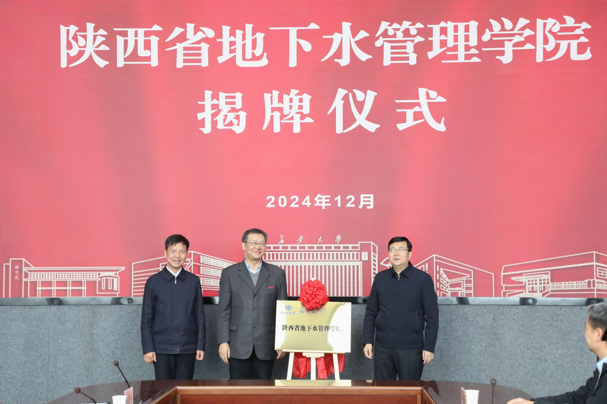 为充分发挥陕西涉水院校学科优势,以高质量水利科技平台建设为水利事业发展赋能增效,助推陕西科技创新和教育事业高质量发展,12月24日上午,陕西省地下水管理学院揭牌仪式在我校举行。陕西省水利厅党组书记、厅长郑维国,陕西省委教育工委委员、教育厅副厅长申雪峰,陕西省水利厅党组成员、副厅长党德才,我校党委书记陈志坚出席仪式,仪式由我校党委副书记黎开谊主持。