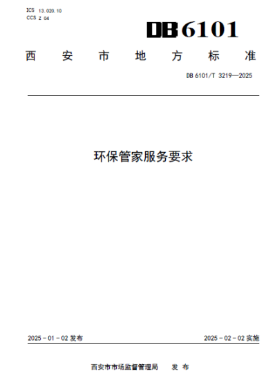 为贯彻落实《中华人民共和国环境保护法》等法律法规,以及《关于积极发挥环境保护作用促进供给侧结构性改革的指导意见》、《关于推进环境污染第三方治理的实施意见》等文件精神,培育及规范全市环保服务,促进环境服务业的发展,根据西安市市场监督管理局《关于征集2023年西安市地方标准制修订项目的通知》(西市监函发[2023] 6号)文件特编制《环保管家服务要求》。西安市市场监督管理局 2025年1月2日批准发布DB6101/T 3219-2025《环保管家服务要求》西安市地方标准,此标准于2025年2月2日开始实施;该标准由西安市环境保护科学研究院主编,香香漫画