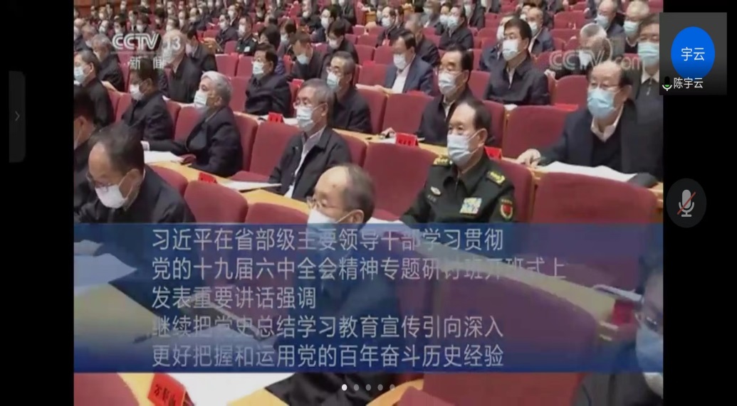 2022年4月29日晚19:00,环境工程系在腾讯会议上开展党的十九届六中全会精神学习主题党日活动。环境工程系全体教工参加了本次学习,会议由支部书记陈宇云主持。