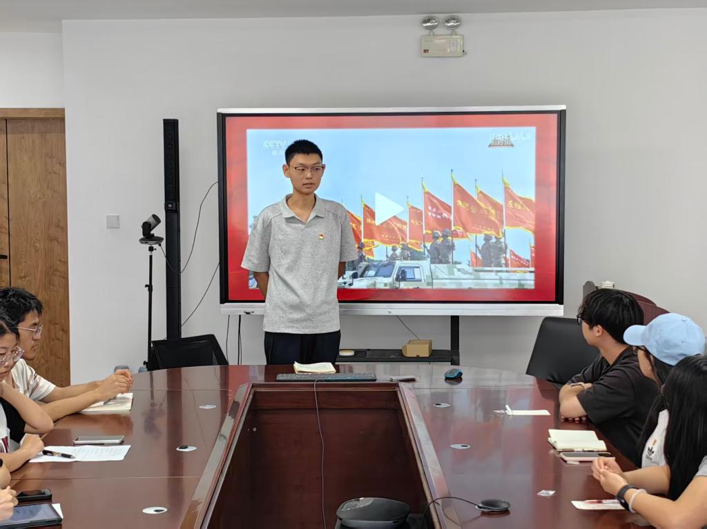 本科生第一党支部于朝晖园一站式社区研讨室组织开展了纪念中国人民抗日战争暨世界反法西斯战争胜利主题教育活动。本次会议由本科生第一党支部书记李金洋同志主持,支部全体党员参会。