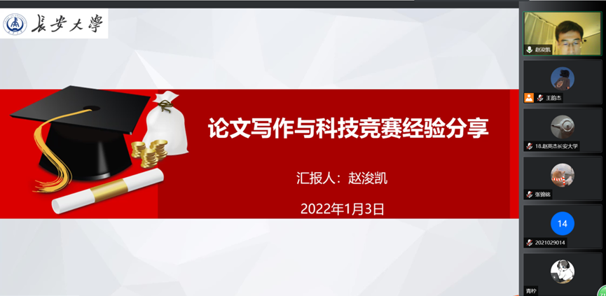 赵浚凯从自身的经验出发,围绕学习科研以及科技竞赛两个方面展开介绍。首先从学习科研的角度出发,分享了文献阅读与文献检索的方法和见解,拿到一篇文章时应重点了解文章的逻辑结构、创新点以及启示。此外还分享了在撰写文章时需要注意的几大问题:不使用N手文献;不轻易说填补学术空白,采用“滚雪球”法来筛选文献;文献综述避免流水账以及强调了应将文献应用至全文的重要性。最后从科技竞赛的角度出发,讲述了科技竞赛作品应有的特点并分享了相关竞赛的要求。科技竞赛作品应具有较高学术理论水平、实际应用价值和创新意义,要想完成好的作品必须要做到学以致用,构思独特新颖,有一定的科技含金量以及要有使用价值和经济效益。他强调PPT内容宜精,开篇应开门见山,展示者应掌握所有的工作内容以及有问必答,有理有据等的竞赛要求。