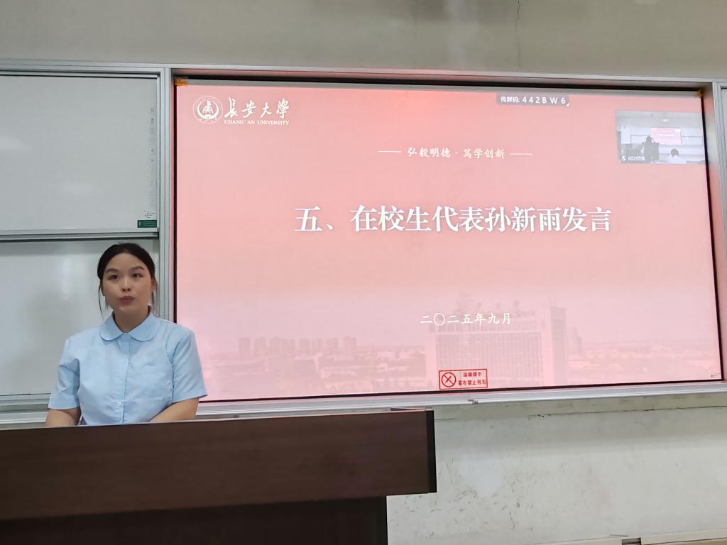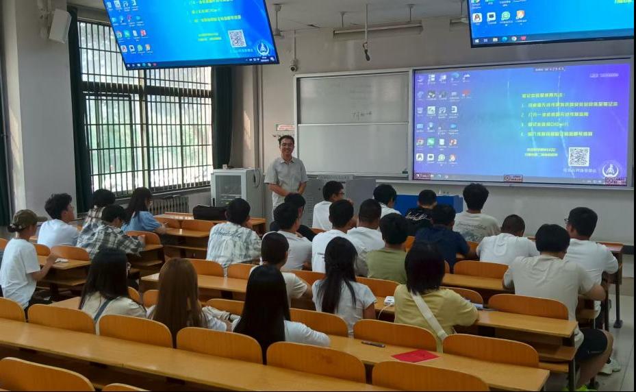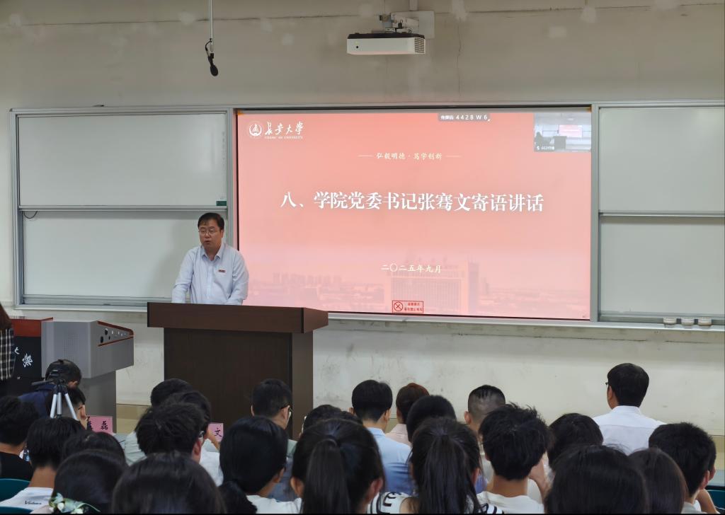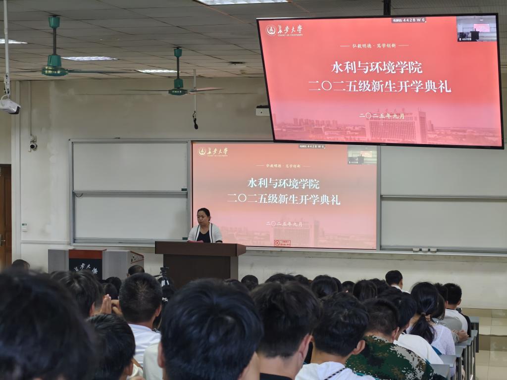 2025级新生开学典礼暨入学教育在渭水校区图书馆东侧图文教室举行,学院党政领导出席活动,典礼由学院党委副书记刘扬主持。